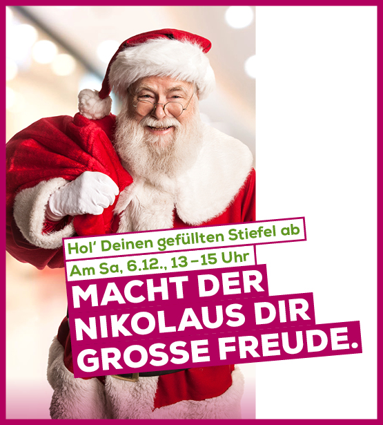 Am 06.12 wird es festlich: Von 13 bis 15 Uhr ist der Nikolaus bei uns unterwegs und füllt eure Stiefel mit kleinen Überraschungen. Einfach vorbeibringen und euch eine Portion Weihnachtsfreude sichern. Ein gemütlicher Moment, der den Start in die Adventszeit noch besonderer macht.